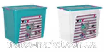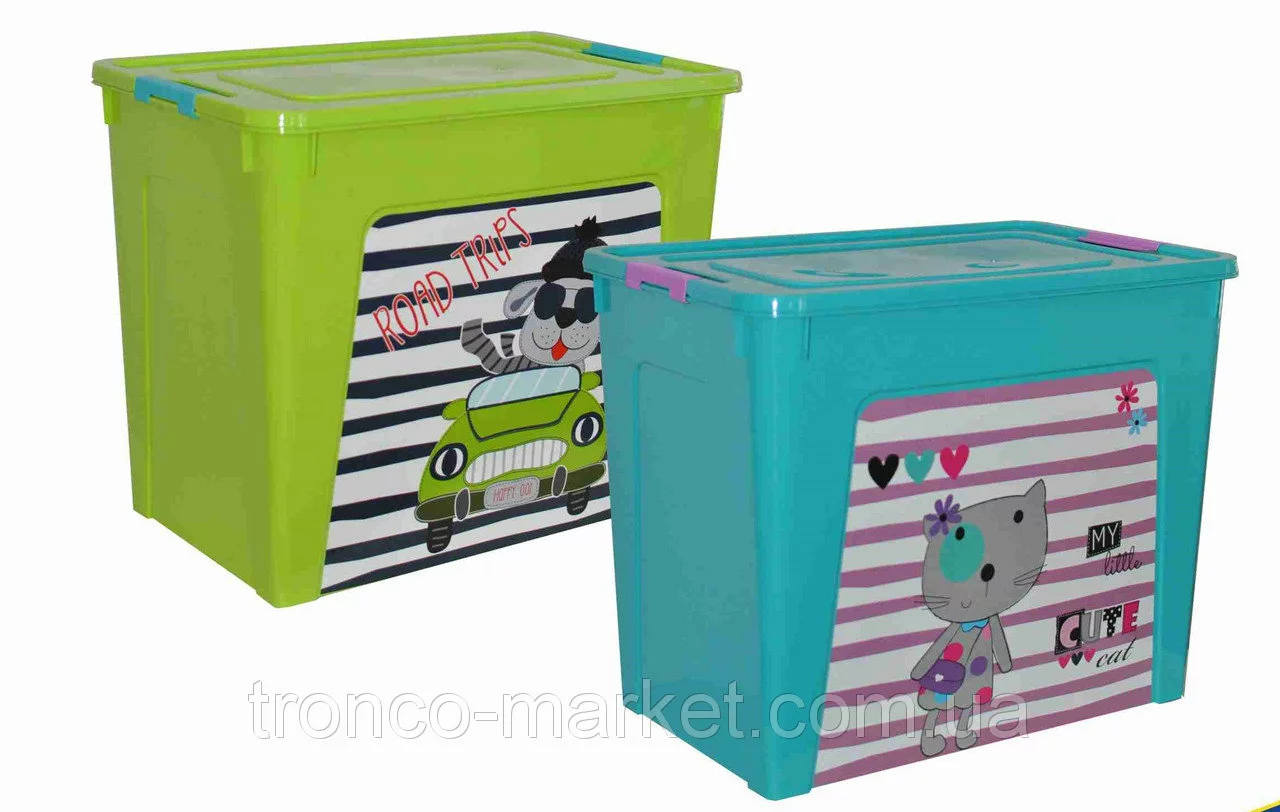 Объем емкости для хранения - 40 литров, вместительный. Яркие насыщенные цвета, удобная крышка и удобные мини ручки. Декор Pet Shop - "животные" и Car " машинки" является наклейкой IML , которая проливается вместе с основной формой, что гарантирует ей долгожительство :) Не стирается и не отрывается.
