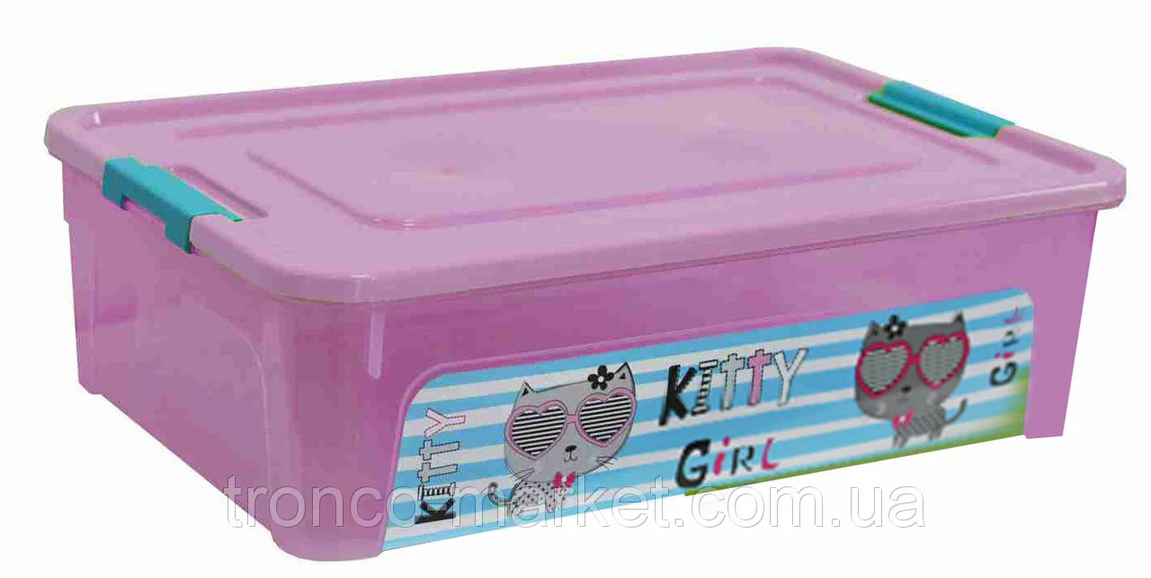 Объем емкости для хранения - 14 литров, вместительный. Яркие насыщенные цвета, удобная крышка. Декор Pet Shop - "животные" является наклейкой IML , которая проливается вместе с основной формой, что гарантирует ей долгожительство :) Не стирается и не отрывается.