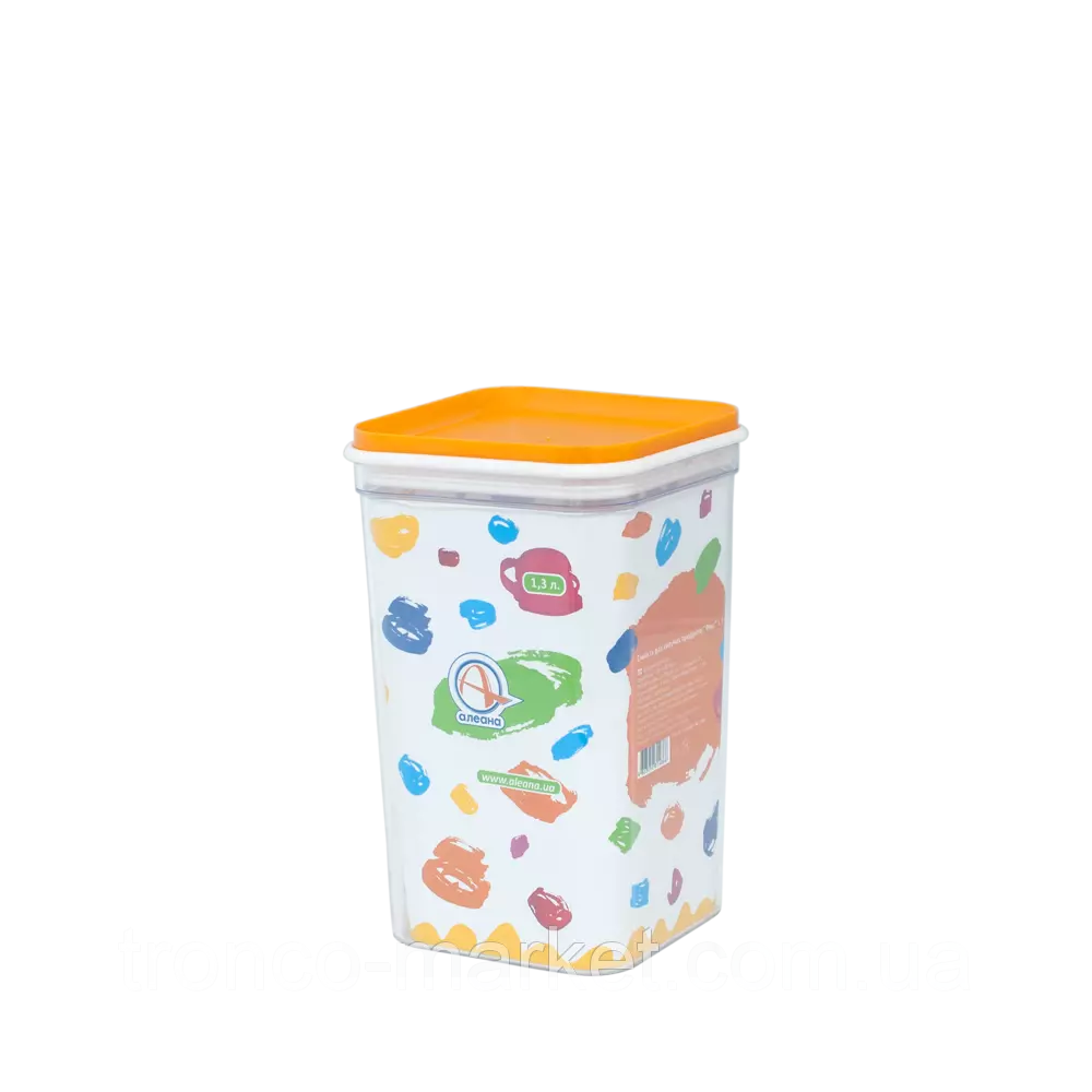Емкость для сыпучих продуктов "Фикс" 1,3л., Артикул 169059, параметры изделия : линейные размеры ,мм : 110 х 110 х 190, объем - 1,3 л; кол-во в упаковке: 25 шт. Цвета в ассортименте :_пр./бірюзова,_пр./кремова,_пр./оливкова,_пр./світло-оранжева,_пр./темно-рожева.