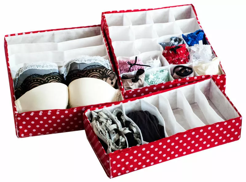 Просторная коробочка на 7 отделений служит для хранения бюстиков, пижам, шелковых халатиков;