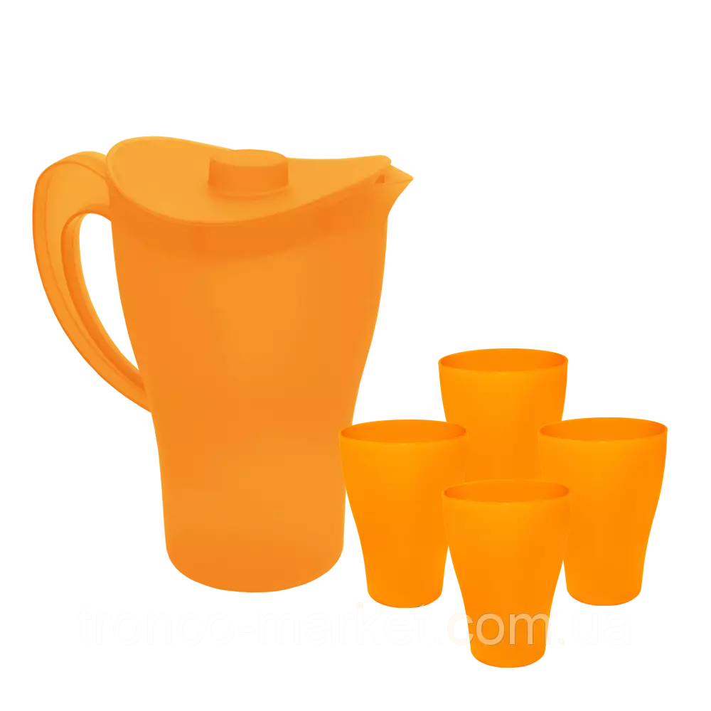 Набор посуды для подачи и разлива напитков: Кувшин с крышкой и стаканы Оранжевый