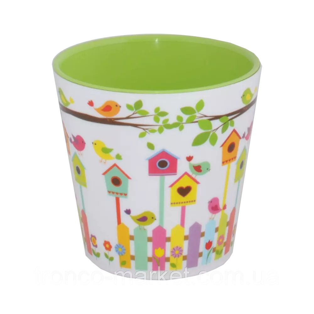 Вазон "Деко" со вставкой с декором 16*15,5 см.-1,8л Птички