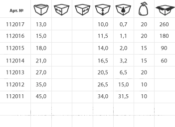 линейные размеры ,мм : D 450 х 340, объем -31,5; кол-во в упаковке: